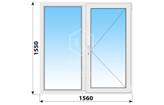 Двухстворчатое пластиковое окно 1560x1550 Г-П